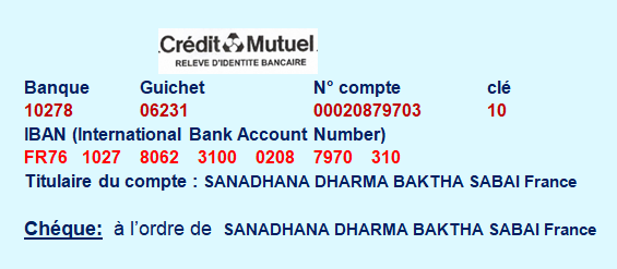 Best way to give donnation is to give a bank check on the name of :“Sanadhana Dharma Baktha Sabai France“.